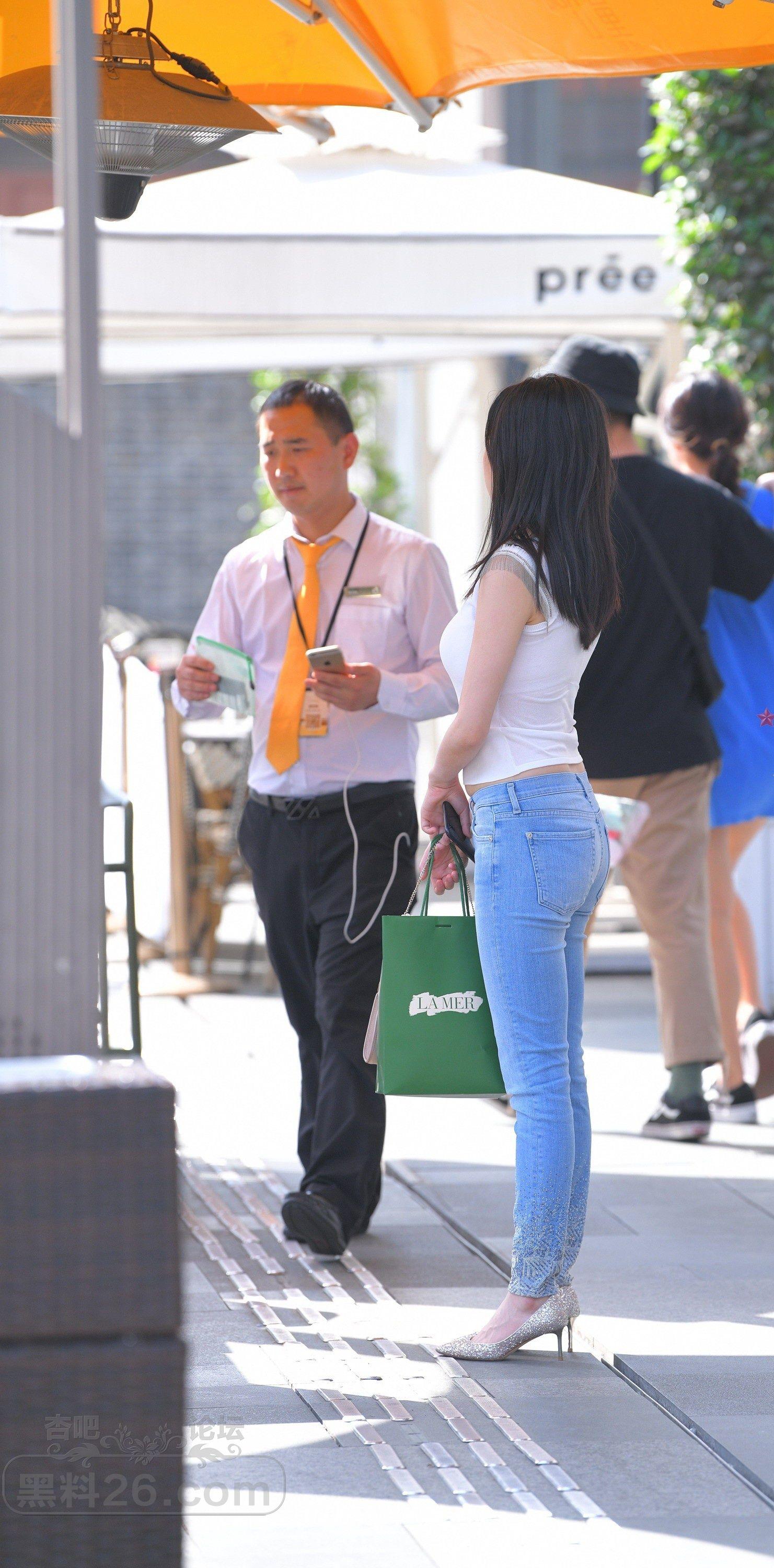 炎热夏日白色背心牛仔紧身裤美女帐篷下乘凉【10P】